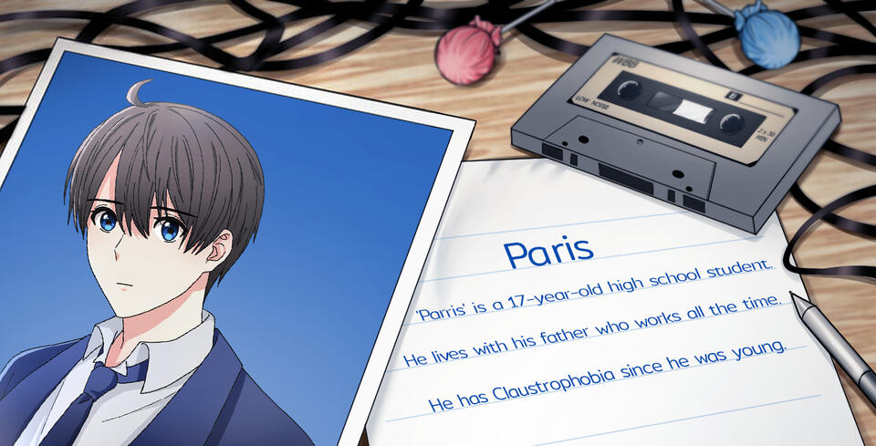 ' Paris '. He is a 17-year-old high school student. He lives with his father who works all the time. He has Claustrophobia since he was young. Paris didn't have a lot of friends.